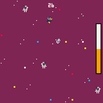 Use the arrow keys to dodge all sorts of enemy birds while you try to collect seeds to survive the winter! Watch your energy bar, though - when you're out, it's off to sleep for your bird pal.